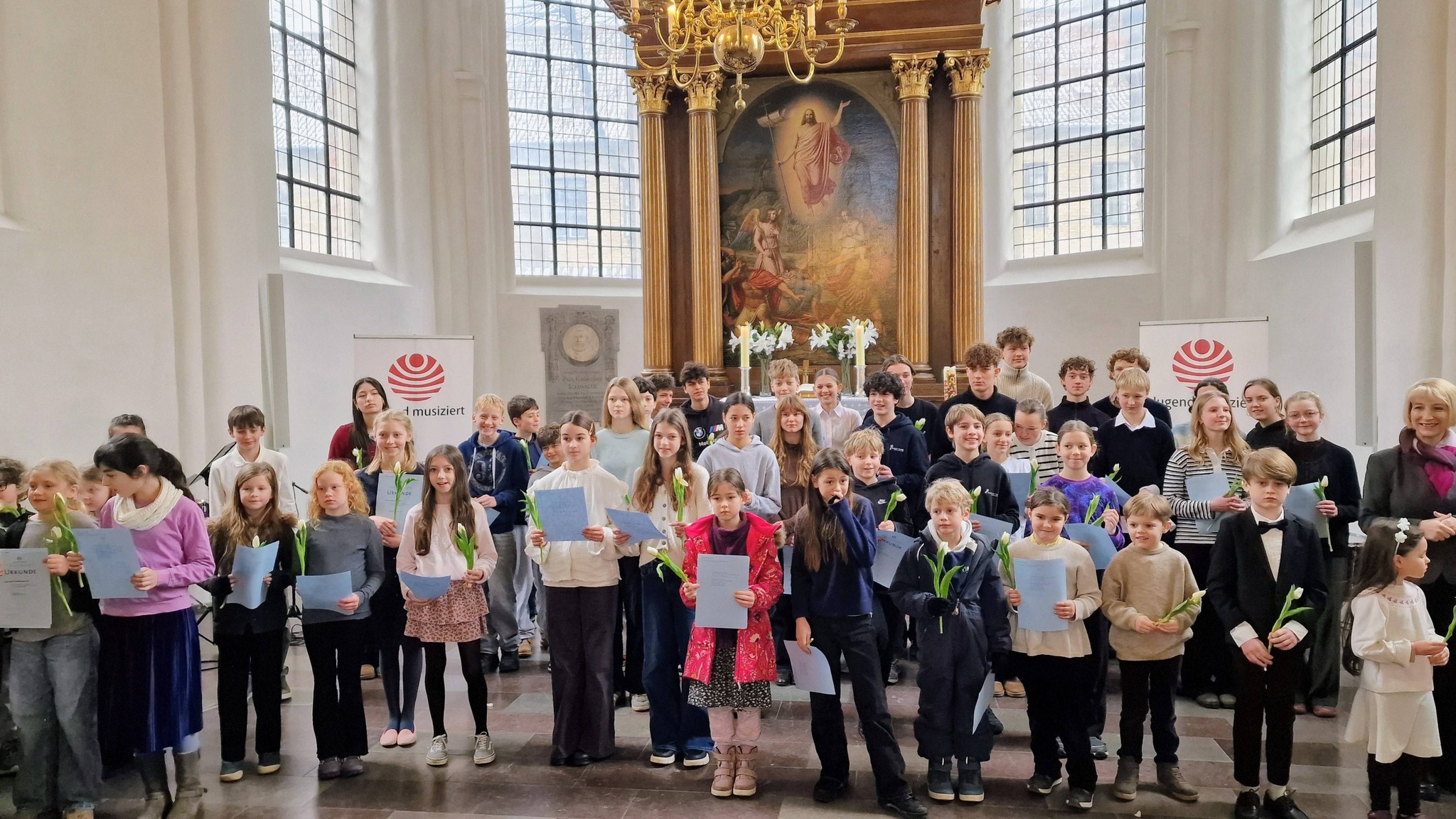 Konkurrencen blev afsluttet lørdag den 31. januar kl. 11.00 med en festlig afslutningskoncert i Sankt Petri Kirke. Her modtog alle deltagere deres diplomer, og udvalgte elever optrådte endnu en gang i et flot koncertprogram. Det var en særlig oplevelse at høre de mange talentfulde musikere og fejre deres store indsats. Mange forældre, venner og lærere var mødt op for at støtte deltagerne med begejstrede klapsalver og opbakkende tilråb. Deltager man i hovedkonkurrencen er det særligt spændende at modtage sit diplom, man har nemlig mulighed for at gå videre i konkurrencen til Landeswettbewerb hvis pointene strækker til det.