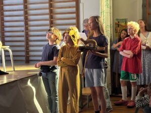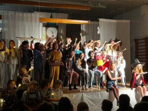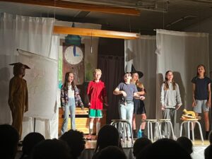 Diese Woche wurde es zauberhaft: im Musical der Muspra Drama Gruppe 4/5 verwandelte sich unsere Turnhalle in die “magische Petrischule”: goldene Bratwürste, verstopfte Schultoiletten und die Petri-Uhr stellten die Kinder vor verhexte Aufgaben. Es wurde getanzt, gesungen, gefeiert und gelacht.