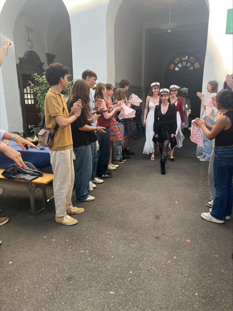 I går, i strålende solskin og med den fjerne horisont som baggrund, tog vores otte dimittender deres huer på på taget af den tyske ambassade. Efter tre år i gymnasiet på Sankt Petri kan de nu bære dem med oprejst pande og se tilbage på deres præstationer med stolthed! Bagefter blev de fejret med forældre og alumner til en munter grillfest i skolegården, som 10. og 11. klasseeleverne havde arrangeret med stor kærlighed.